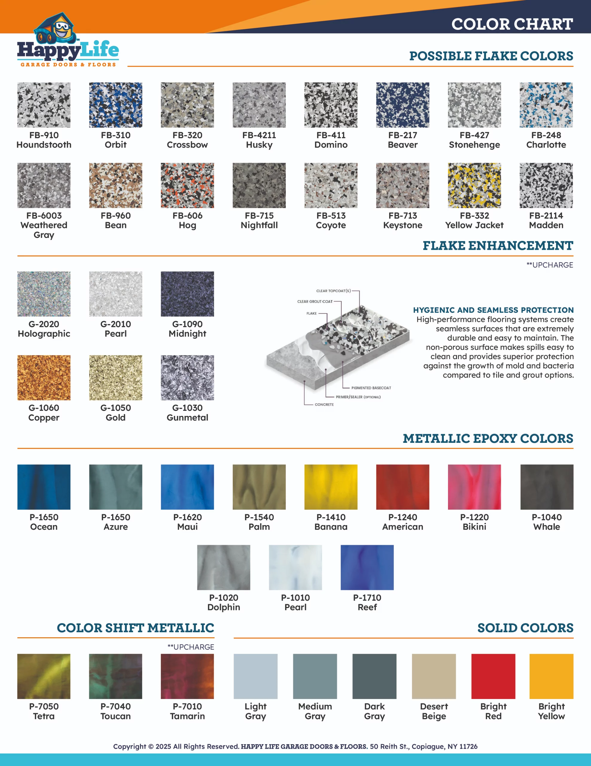 At Happy Life, we believe your floors should be just as beautiful, functional and durable as any other part of your home. Whether you’re looking to upgrade your garage, basement or workshop, our polyaspartic floor coatings offer the perfect blend of style and strength—installed by professionals who take the time to do it right. In addition to our garage door services, we specialize in custom floors that will bring elegance and beauty to your garage like nothing else.